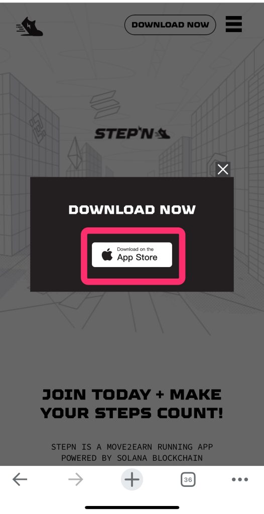 STEPNは歩いたり走ったりすることで$GSTという通貨が獲得出来るSolanaチェーン上のアプリ。