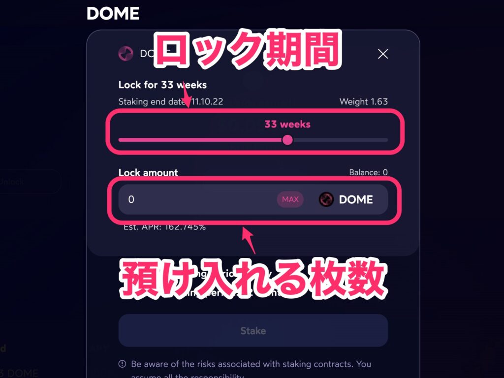 今回のEVERDOMEのステーキングはロック期間に応じてAPYが変わります。