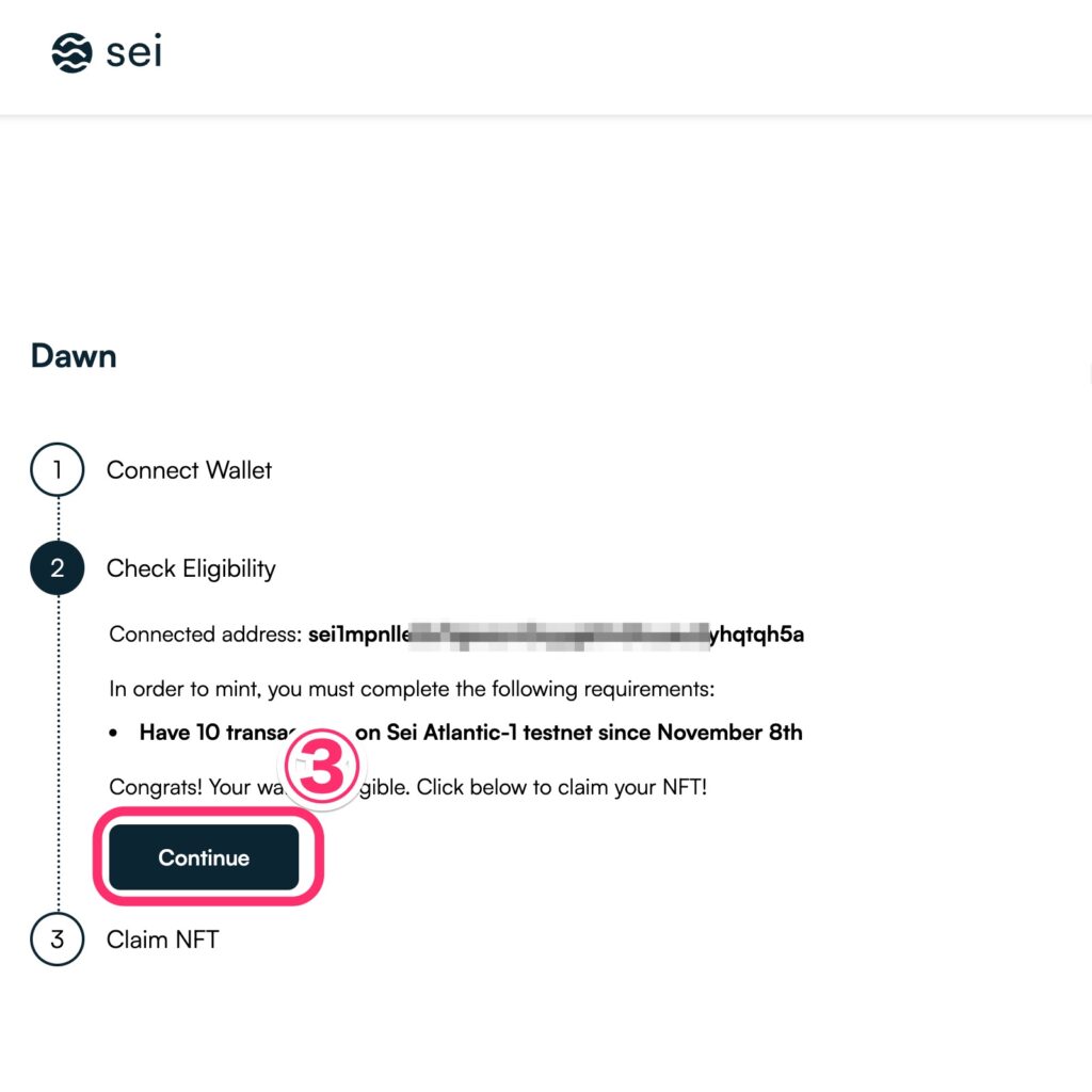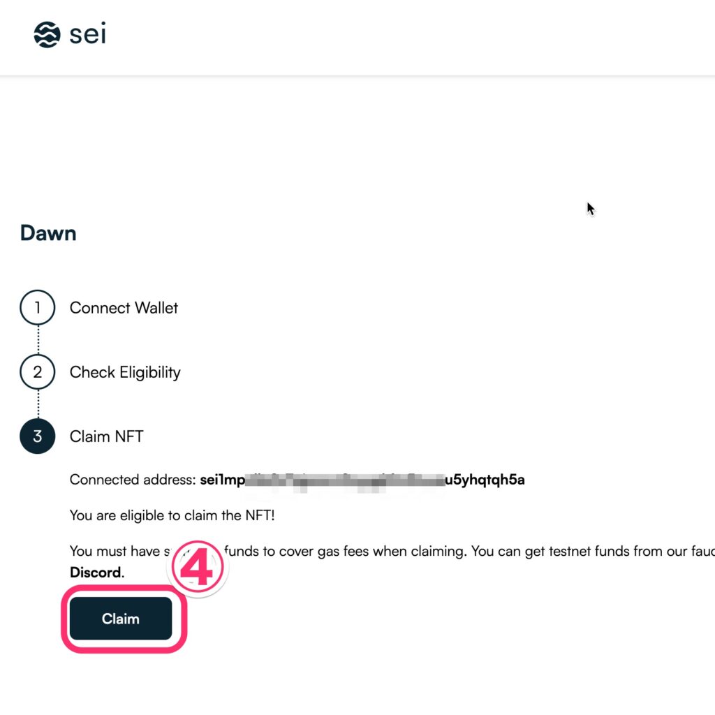 Seiネットワークの公式サイト( https://www.seinetwork.io/dawn )からClaim出来る。