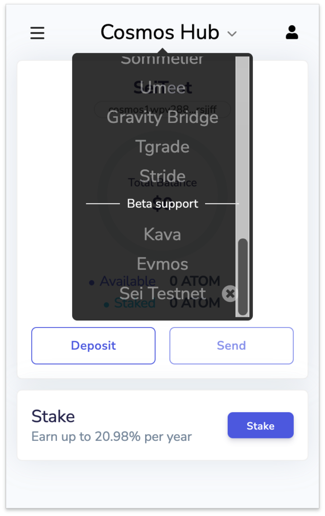 Chrome拡張機能のKeplrウォレットのネットワークに【Sei Testnet】が追加されていればOK!