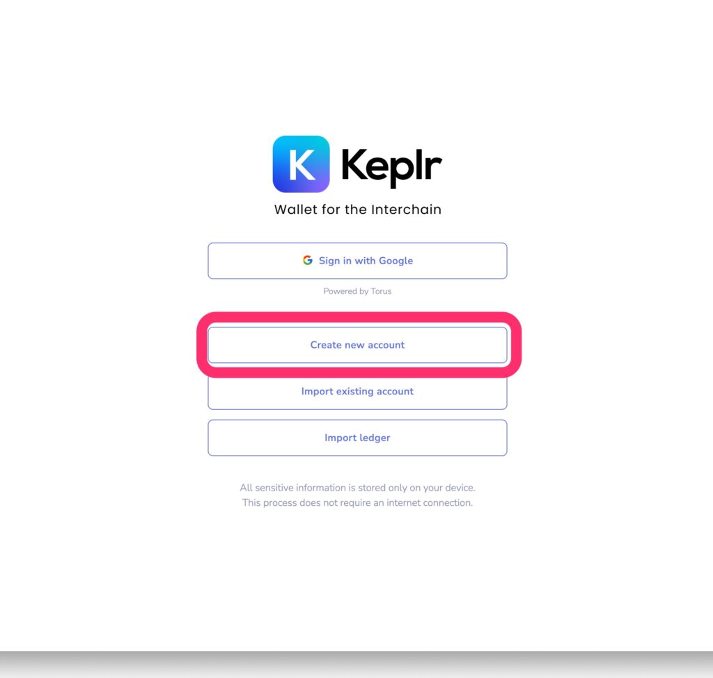 Keplrの公式サイト( https://www.keplr.app/ )からChromeの拡張機能「keplr」を追加。