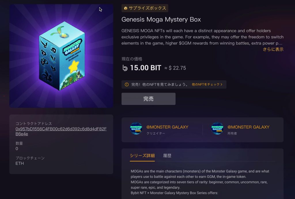 1Box15BIT(当時約3,000円程度)だったが、売買開始後は一時300万円台で販売される等ByBitで本格的に扱われるNFTだったこともあってかなり盛り上がりました。
